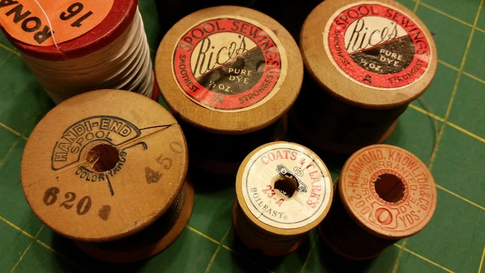 Anyone that knows me, knows I love wooden thread spools. I hit the jackpot here. Some are just all purpose sewing threads. But . . .