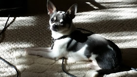Rocky and I spent most of the day with Mom. The weather held out beautifully. It was a cold start, but the sunshine was gorgeous - as you can see, Rocky took full advantage of it. Mom was really happy to see him. While I straightened up, Mom did some sorting and purging. Yes, 'tis the season :)